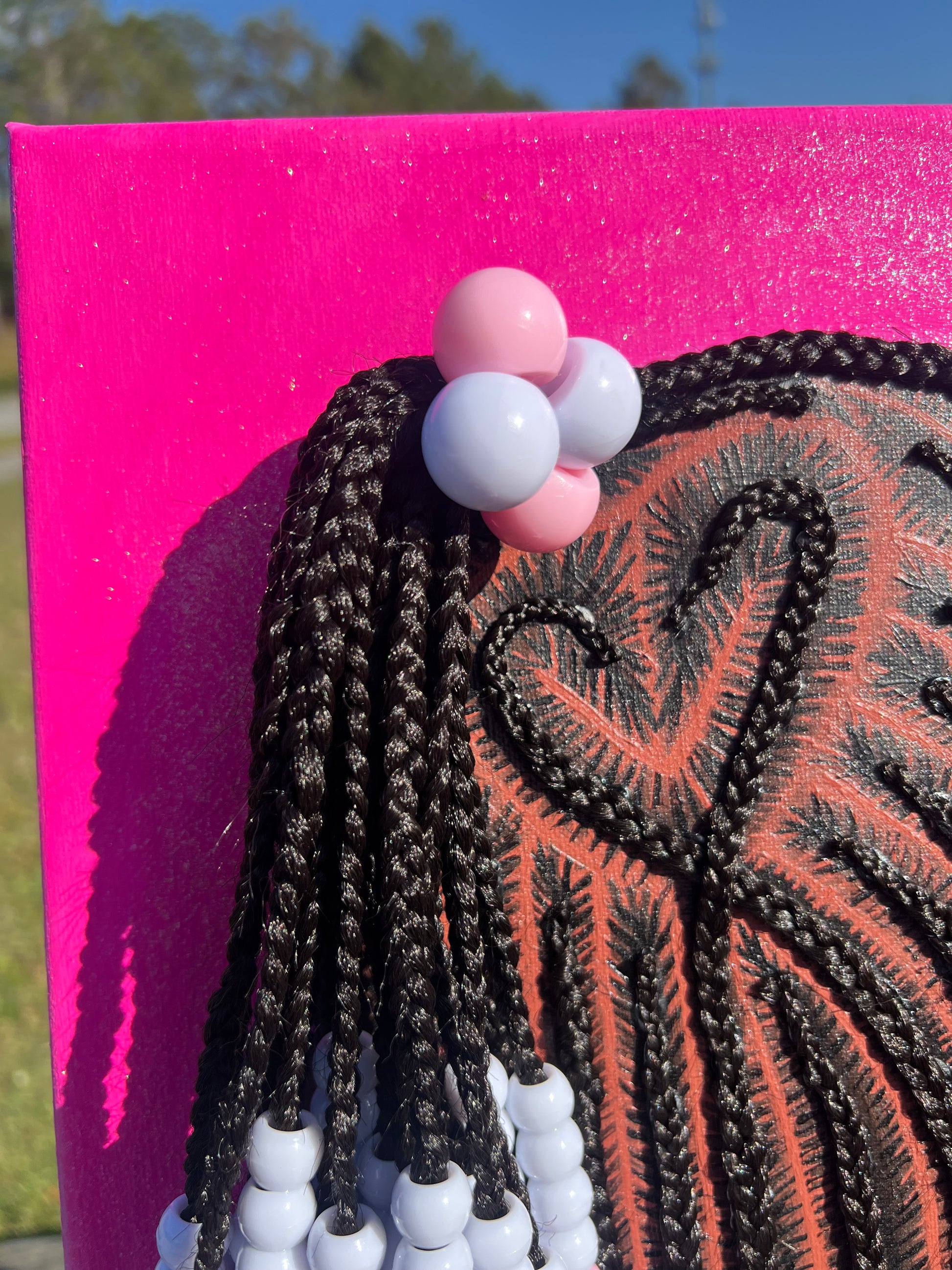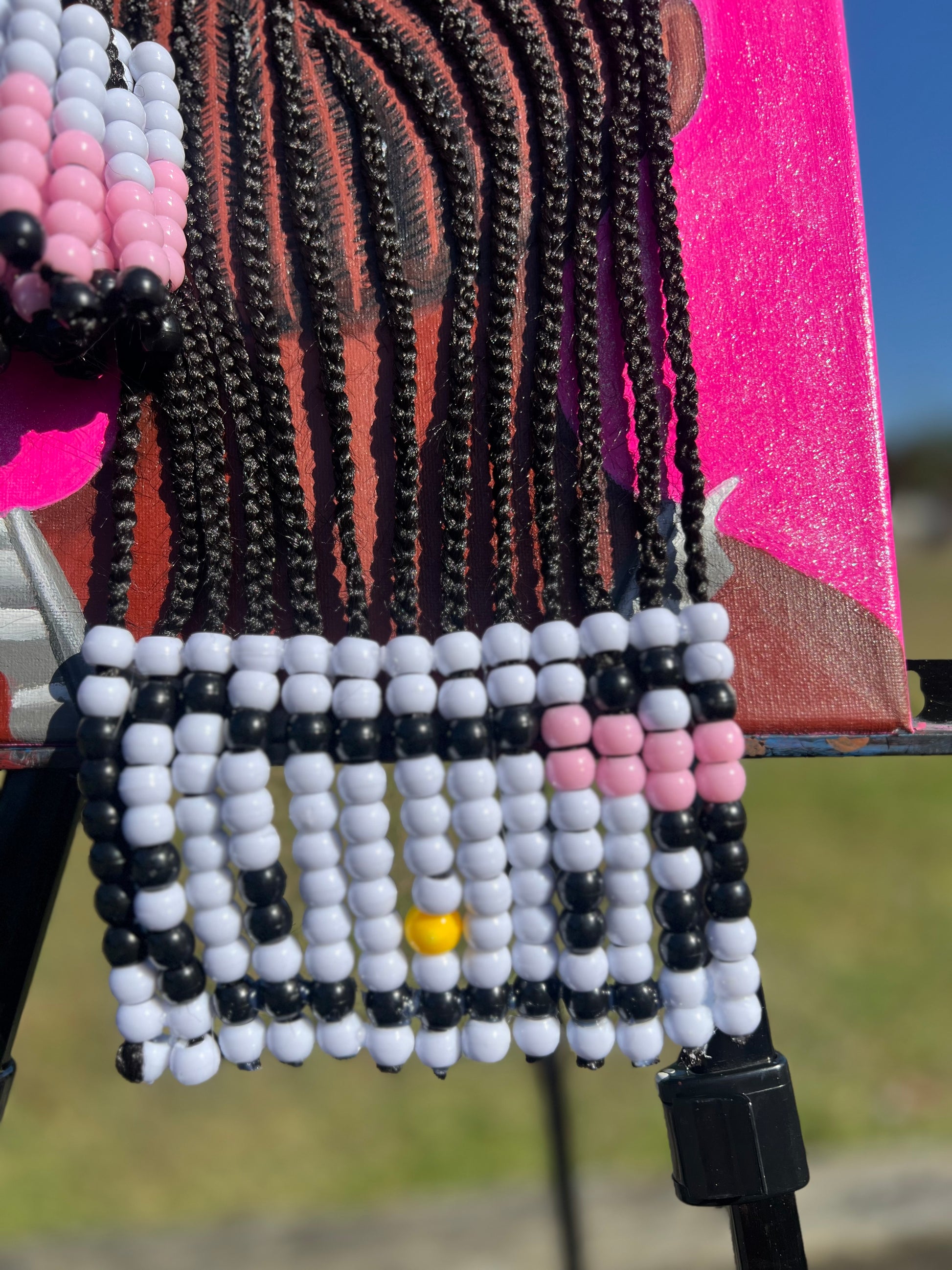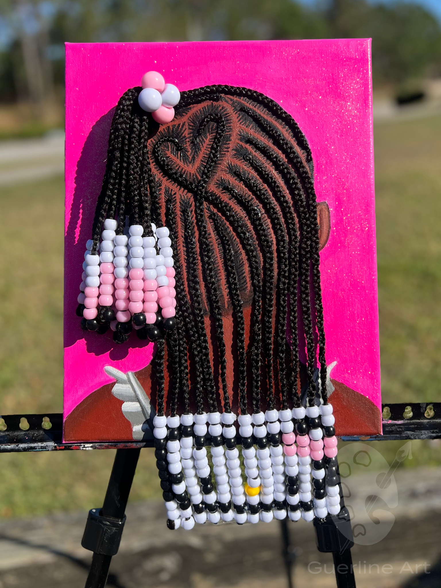 This painting was inspired by my favorite childhood hairstyle: hair beads! Each braid was hand made by yours truly ❤️